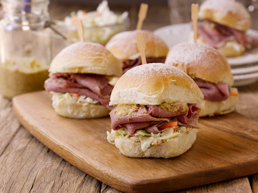 Corned Beef Sliders with Cabbage Slaw and Guinness Mustard