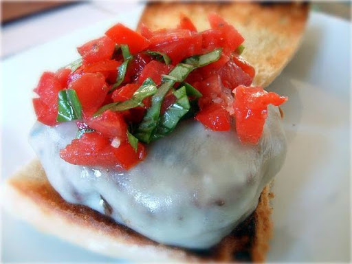 If you love tomatoes as much as I do, this burger is a delicious twist on Italian bruschetta, served on crostini. This recipe was inspired by Tyler Florence's bruschetta burgers, that were served at Applebee's restaurant.
