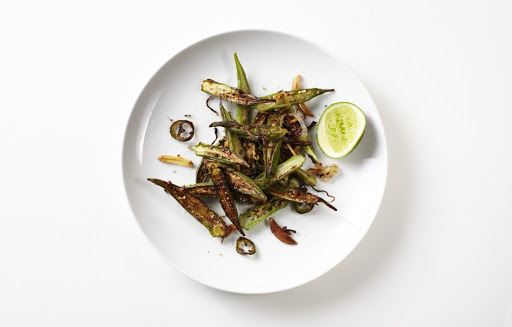 Stir-Fried Okra with Shallots, Chile, and Ginger