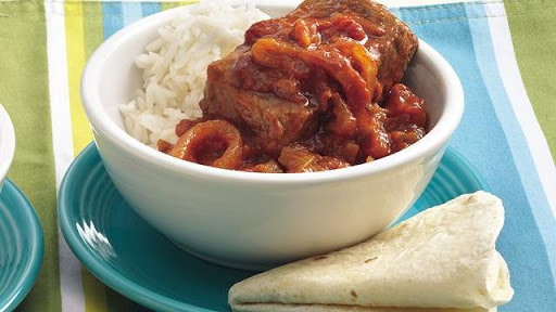Serve the steak mixture over cooked rice. For a bread accompaniment, warm tortillas in the microwave.