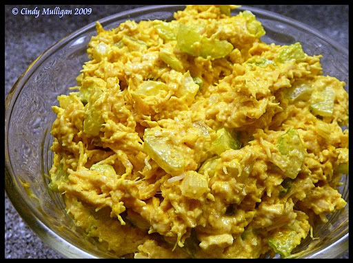 Break the chicken apart with a fork; add the celery, onions and mayonnaise. Mix well.