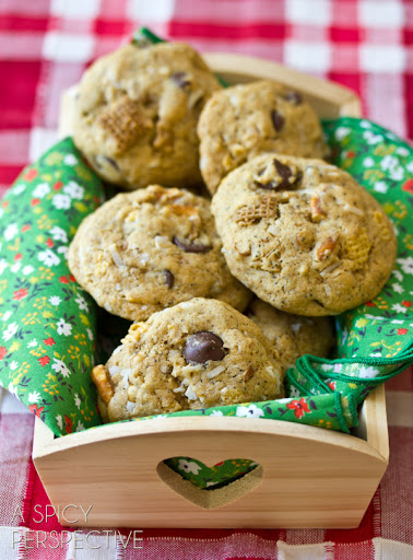 Whether you call them monster cookies, kitchen sink cookies, everything cookies, or compost cookies… these cookies are a salty sweet dynamo! Just try to resist them. Then I take all the baking chip bags with one handful of chocolate or cinnamon chips, all the salty snacks with just a few crumbs in the bottom of the bag (like pretzels, potato chips, nut mixes, or even chex mix) and dump them into a coffee coconut cookie dough.