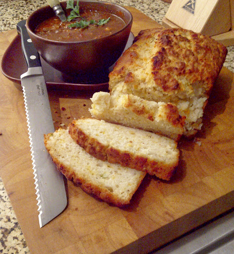 This is an easy way to make a loaf of fresh, buttery, cornbread-type bread. The original recipe didn't call for jalepenos and cheddar cheese, so I added them myself. You can add fresh rosemary, thyme or other herbs, spices and cheeses for different tastes.