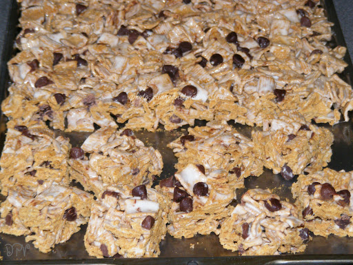 Similar to rice krispie treats but has chocolate chips and uses a different cereal that's just as delicious!