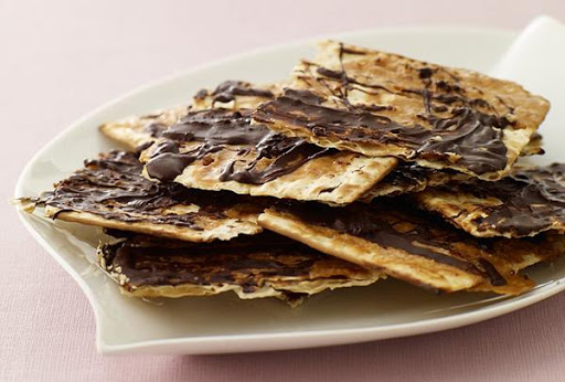 Reduce oven temperature to 325ºF. Place cookie sheet on middle rack in oven for 15 minutes (check frequently to make sure it doesn’t burn). Remove matzo from oven; sprinkle with chocolate. Let it stand for about 5 minutes, then spread the chocolate over each sheet with a spatula that’s been coated with cooking spray.