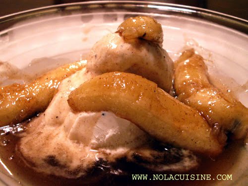 2. Continue to baste the banana slices until the flames subside. Serve over the ice cream on a chilled plate.