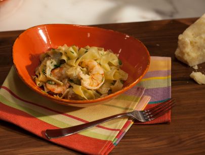 Shrimp and Artichoke Tagliatelle with Black Pepper and Pecorino