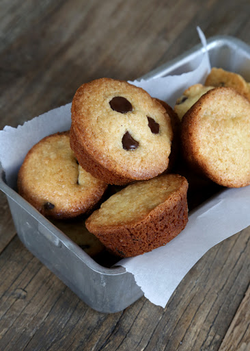 Preheat your oven to 325°F. Grease very well the bottom of each well of a 24-cup miniature muffin tin, and halfway up the sides. Do not grease the very top of the walls of the muffin wells. This coaxes the muffins to rise up and dome, instead of flattening on top. Trust me?