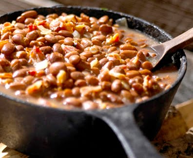 Add enough water to the pot to cover the beans by a couple inches. Place on stove and bring to a boil, turn heat down to a simmer and let cook until tender, about 3 hours. As beans are cooking just add more water to ensure they are covered. When beans are nice and tender strain and serve.