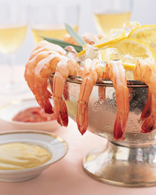 To serve, arrange shrimp along rim of an ice-filled bowl (or on a platter) accompanied by lemon slices and cocktail sauce or lemon aioli.