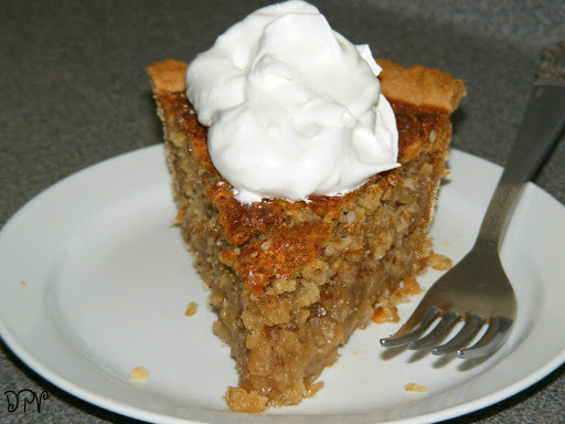 It's similar to Pecan Pie, only better! The syrupy base is chocked full of pecans, oatmeal, and coconut. Dee-licious with or without whipped cream!