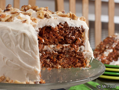 Meanwhile, prepare Buttery Cream Cheese Frosting (see Note). Place 1 cake layer upside-down on a serving plate and frost top. Place second layer over first and frost top and sides. Cover loosely and chill at least 3 hours before serving.