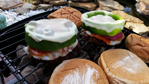 Grill your burger 95% done. Then slice a green pepper in "circles"...