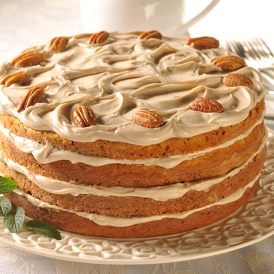 This is an absolutely delicious cake. I've made it several times for the holidays, and it always gets rave reviews. It's perfectly moist and has just the right amount of spice to balance the sweetness of the frosting.