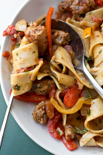 Italian “Drunken” Noodles with Spicy Italian Sausage