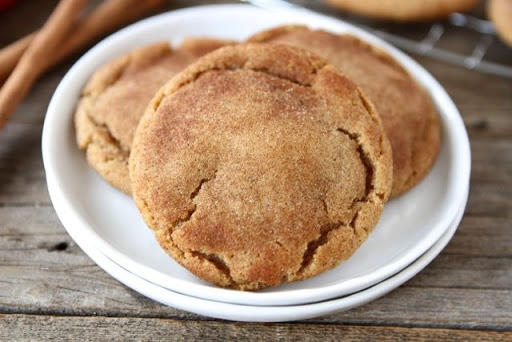 Once dough is chilled, measure about 2 tablespoons of dough and roll into balls. Meanwhile, mix the rolling mixture ingredients in a bowl. Roll balls in the cinnamon-sugar rolling mixture. Place dough balls on cookie sheet, 2 inches apart. If you desire a thinner cookie, flatten the tops of the cookies a tiny bit (very tiny) with your hand.
