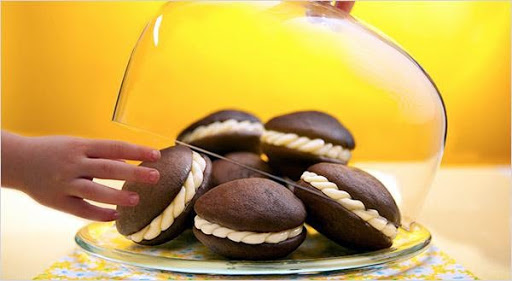 5. For assembly: Using an ice cream scoop or spoon, place 1/4 cup buttercream on flat side of each of 6 cakes, spreading it to edges. Top filled half with another cake to sandwich the buttercream. Store in an airtight container at room temperature for up to 3 days, or wrap individually and freeze for up to 3 months.