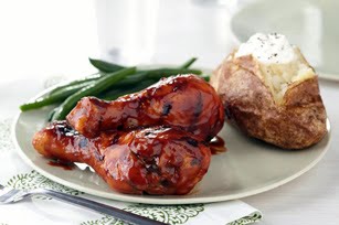 PLACE chicken on grill grate. Turn off burners directly below chicken; cover grill with lid. Grill chicken 25 min. or until done (165ºF), turning occasionally and brushing with barbecue sauce mixture for the last 10 min.