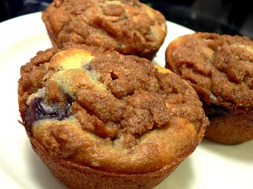Mix together all the ingredients for the crumb topping and sprinkle evenly over muffins.