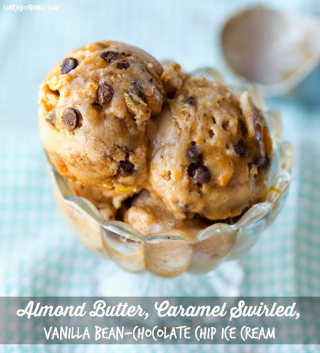 Almond Butter, Caramel Swirled, Vanilla Bean-Chocolate Chip Ice Cream