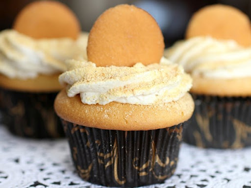 2 Before filling paper baking cups as directed on box, place 1 vanilla wafer cookie in bottom of each paper cup. Fill cups as directed on box. Bake and cool cupcakes.