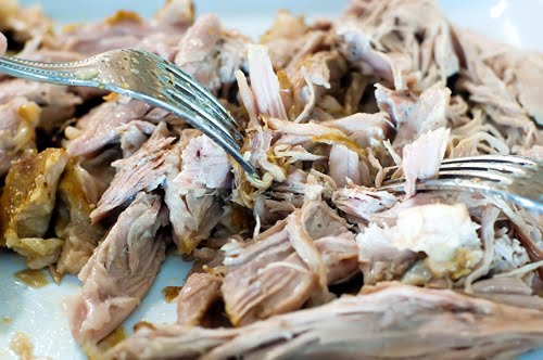 Cover the pork and place into the oven for 6-7 hours. When done, let rest uncovered for 15-30 min.