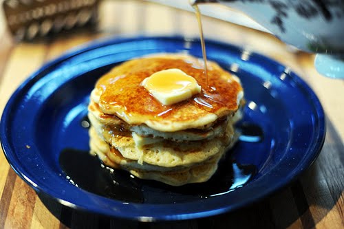 Cook on a greased skillet over medium-low heat until golden brown. Serve with an obscene amount of butter and warm syrup.