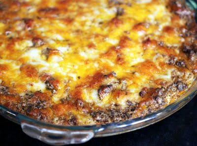 3. In a bowl, combine the cream cheese, Rotel tomatoes, chili powder, and ground cumin. Add the beef mixture and half of the shredded cheese. Stir to combine. Transfer the mixture to the prepared pie plate, and sprinkle with the remaining shredded cheese.