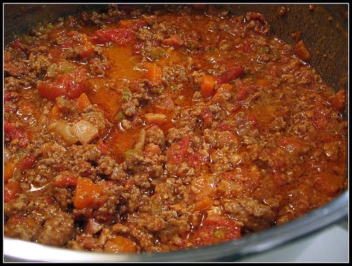 Heat oil in a large Dutch oven or skillet over medium heat. Add grated carrots and onions and cook for a few minutes. Make a well in the center of the mixture, then add in the ground beef. Cook for a few minutes until brown, gradually stirring it into the carrot mixture. Throw in oregano and basil. Use fresh if you have it; if you don’t, it’s fine. When the meat is browned and combined with other ingredients, make another well. Add tomato paste and let it heat. Add garlic and stir to combine. Make a well in the center of the mixture and add red wine. Stir together. Add Worcestershire and stir. Add canned tomatoes. Finally, pour in milk, stir, and let simmer for 30 minutes to 2 hours—however long you need. Serve with pasta and a generous sprinkling of Parmesan cheese.