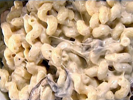 Combine the pasta, sauce, and mushrooms in a large bowl and pour them into a 10 by 13 by 2-inch baking dish.