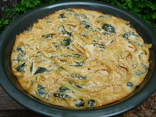In a separate bowl, combine the remaining ingredients and pour over the pie. Bake until the center is firm.