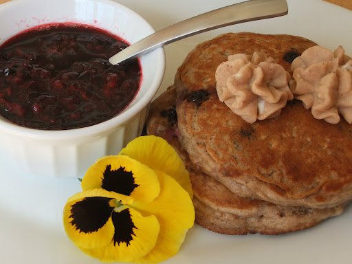1. Combine dry ingredients in a bowl, then add wet. Mix, but don’t overmix. Cook on an oiled (or sprayed) pan, on low-medium, flipping each pancake once.Top with syrup, powdered sugar.