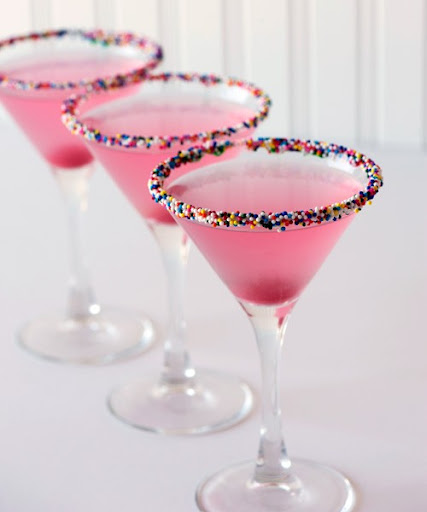 Rim glass with Sprinkles (cake frosting helps to make them stick). Combine vodka and cranberry juice in an ice shaker, half-filled with ice cubes. Shake well. Strain into glass. Top with Champagne. Drop in cherry. Enjoy!