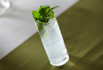 1.Put all ingredients except club soda and mint sprig into a mixing glass.