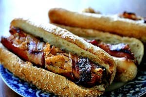 When I saw this recipe for Crosshatch Hot dogs at Food&Wine, I almost couldn't believe my eyes! A hot dog recipe with complex flavors and topped with a tangy, spicy slaw and served on a toasted croissant with Dijon butter? Oh my! This is not your father's hot dog!