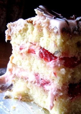 Vanilla Cake with Strawberry Cream Frosting