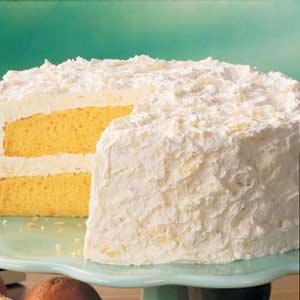 Combine pineapple and dry pudding mix; fold in whipped topping. Spread between layers and over top and sides of cake. Store in the refrigerator.