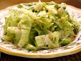 Toss the romaine with enough Salsa Verde to coat. Top with the pine nuts and shaved Parmesan
