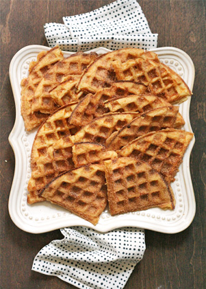 A Pure Wow Original Recipe: We make the batter with yeast so the waffles are light and fluffy--just prepare the batter, then let it rise overnight in the fridge. When you wake up the next morning, pour the batter onto a waffle iron and cook for a few minutes. Finally, to take these waffles straight into doughnut territory, toss the warm rounds in cinnamon sugar. --PureWow