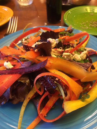 1. Scrub carrots gently (so you don't lose the bright outer color), using a brush under running water. With a mandolin or vegetable peeler, cut then lengthwise ribbons to make 1 qt. discard ends and tough cores.