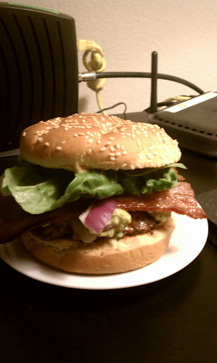 Mash avocado and fold in 1/4 cup onion, 1/2 tbsp salt, 1/2 tbsp pepper, and hot sauce. Spread on bun.