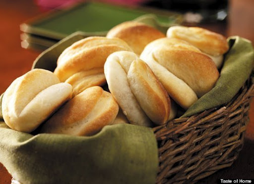 Using the dull edge of a table knife, make an off center crease in each roll. Fold along crease so the large half is on top; press along folded edge. Place 2 in. apart on greased baking sheets. Cover and let rise until doubled, about 30 minutes.