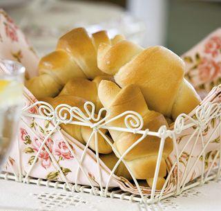 Punch down dough; divide into 2 balls and let stand for 10 minutes. On a floured surface, roll out each ball into a 12-inch circle; slice each into 12 wedges. Starting at wide end, roll up each wedge crescent-style. Place rolls point-side down on a greased baking sheet. Cover and let rise in a warm place until nearly double, 30 to 45 minutes.