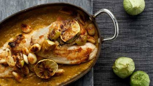 4. Place fish fillets in shallow ovenproof pan and add sauce. Refrigerate for approximately 15 minutes.