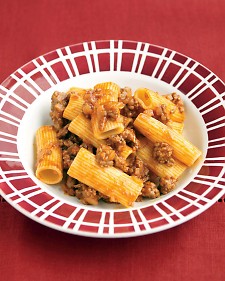 While pasta is cooking, cook lamb in a large saucepan over medium-high, breaking up with a wooden spoon, until no longer pink, 3 to 5 minutes. Add onion and garlic; season with salt and pepper. Cook, stirring occasionally, until onion is tender, 4 to 6 minutes.