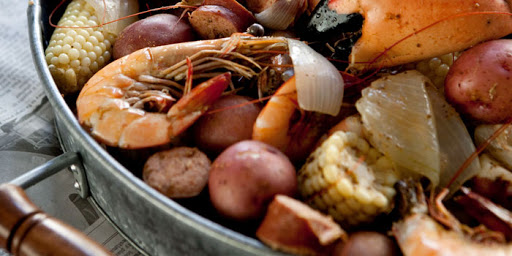 Serve with soft butter and olive oil (for potatoes and corn), sea salt, Tabasco, and cocktail sauce. Lemon wedges and chopped hot peppers (like jalapeño) are also sometimes served as accompaniments.