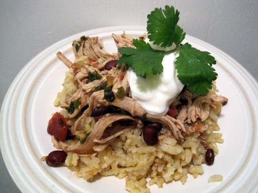 This was a great dish that cooked all day in the crockpot and was ready when we got home. I topped with fat free sour cream and cilantro. 0 points!