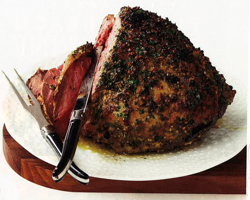 Preheat oven to 375 degrees. In a bowl, mix 2 tbsp. of the oil with the mustard, garlic and herbs. Coat the lamb with the mixture and season with salt and pepper.