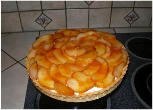 3 In another saucepan, heat remaining water and apricot jelly. Stir and cook until jelly is liquefied so that it can be used as a glaze. Spread apricot glaze over pears and let pie rest in fridge for 4 hours before serving.