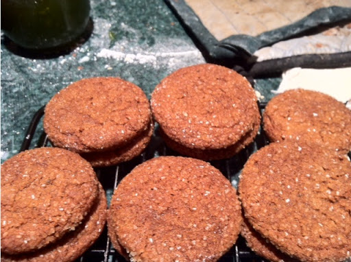 Mix your dry ingredients. Cream shortening and butter till fluffy. Add the sugar and molasses. Add the vanilla and the egg. Add the flour mixture. Chill.